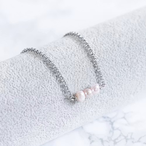 1. Material: sötvattenspärlor i storlek 6 - 7 mm., detaljer och justerad kedja i rostfritt stål.